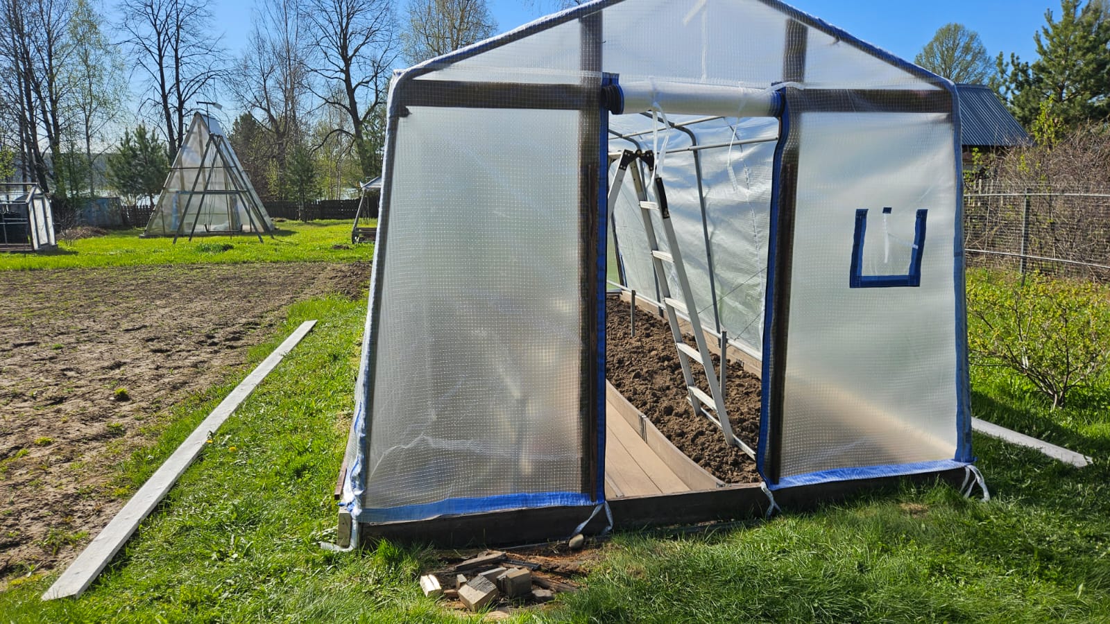 У всех теплиц теперь 2 двери на молнии и 2 форточки на липучке. А также боковое проветривание на молнии с подвязками.